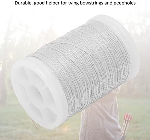 IMPACT RESISTANT MATERIAL: The string protection rope is made of polyethylene material, which has good water resistance and good impact resistance.EASY TO CARRY: Archery serving thread come with small size, palm size, easy for you to carry out for training.GREAT HELP: 110meter long rope, diameter for 0.4mm, sturdy and durable, good helper for tying bowstrings and peepholes.STABLE AND WEAR RESISTANT: This is a tying peep sight nock maintenance accessorySTABLE AND WEAR RESISTANT: This is a tying peep sight nock maintenance accessory.ing , which will your hands in use..