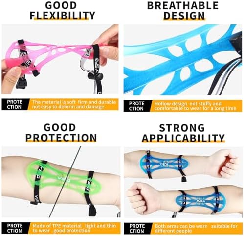 ADJUSTABLE & CUTOUT DESIGN: SPG armguards features breathable holes, allowing air to circulate and ensuring a cool and comfortable forearm.Elastic strap with adjustable buckle design, suitable for different arm sizes of archers.They are an excellent choice for archers who want an arm guard that is easy to care for and will last a long time. lightweight, comfortable and water resistant, making them ideal for outdoor use.