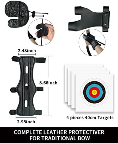1 x traditional Hungarian recurve bow2 x replacement strings5 x 31.5In carbon arrows4x archery Targets1x leather arm guard1x leather finger glove1x leather Hand guard