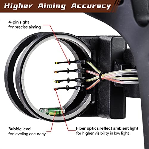 [Great Visibility & High-Accuracy]: Equipped with a four-pin sight for precise aiming and helping you react quickly to a moving target, fiber optics to reflect ambient light for maintaining visibility in low light conditions, along with a brushed arrow rest to reduce friction and ensure clear vision of the entire arrow and pen tip for smooth firing