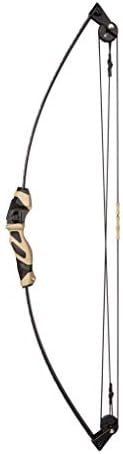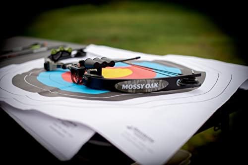 READY TO SHOOT: Package includes an ambidextrous soft-touch reinforced grip, arrow rest, soft-touch finger rollers, a built-in adjustable sight pin, visually enhanced cams, two 28″ fiberglass arrows, in the color Mossy Oak Bottomland