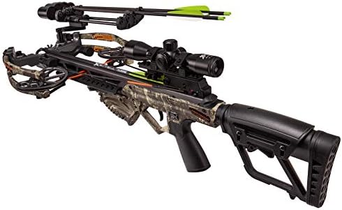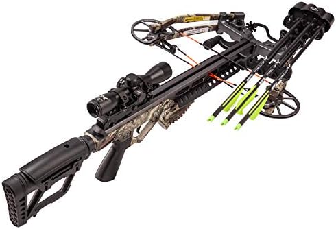 Bear X Constrictor Ready to Shoot Crossbow Package – Illuminated Scope, Adjustable Quiver and Cheek Pad, Bolts, Cocking Rope and String Wax – 10” Width Cocked – 410 FPS – Multiple Finishes Available