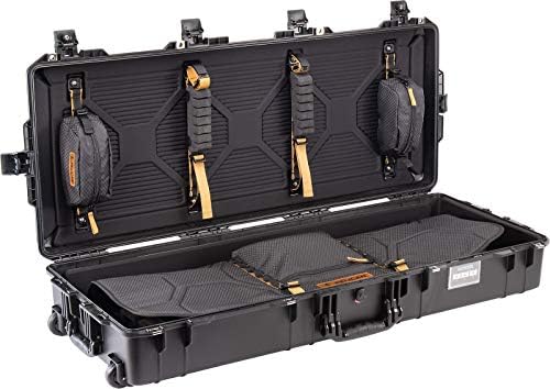 PelicanColorCase presents: Brand new Pelican 1745 long Bow case. Interior: 44″ × 16.8″ × 7.9″. Super-light proprietary HPX Polymer makes this case up to 40% lighter than the competition. Added divider provides protection for your bow and features a large storage pocket on the top. Includes: 2 foam arrow holders, 2 small foam bumpers, 2 large foam bumpers, 2 arrow tube straps, 2 small accessory pouches, 6 bungee cords, 1 padded divider. 6 press and pull latches with 2 TSA approved locking latches for security. Integrated stainless steel bearing wheels for easy transit Molle Strap System creates a customizable interior Outside dimensions of case – 46.70” x 19.40” x 8.70”.(Part # 017450-0121-110).