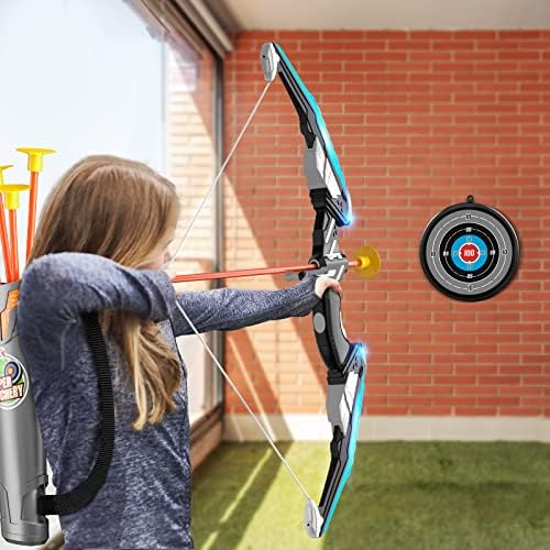 Bow and Arrow Set for Kids – LED Light Up Archery Set – Includes 10 Suction Cup Arrows, 4 Target & Shoulder-Strapped Quiver, Outdoor Toys Archery Boys Toys Gifts for 3 -12 Years Old Boys Girls