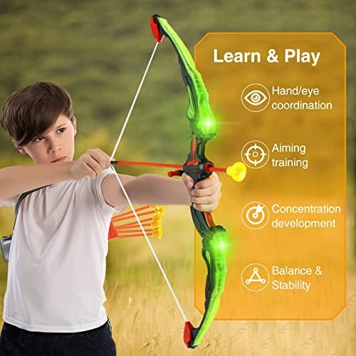 【Luminous & Light-up LEDs】Featuring 2 built-in lighting LEDs that kids can press to switch on/off, this archery toy enables kids to play with it day and night, adding great fun with lighting effect. Every child wants a shining and cool archery toy as a gift.
