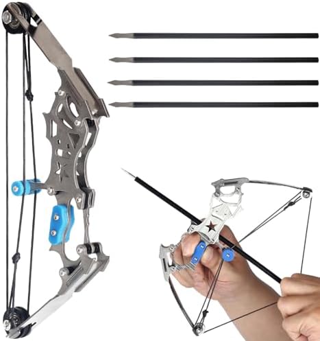 FENJANER Archery Mini Compound Bow and Arrow Set -Stainless Steel Mini Pocket Survival Hunting Bow RH/LH for Target Shooting Practice Archery Entertainment Fun Gift