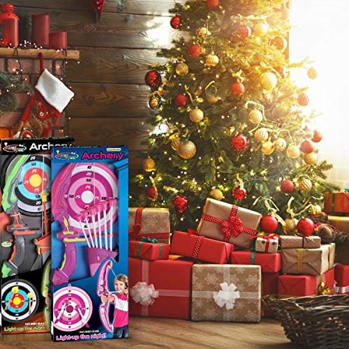 Here can explain why you choose our brand. Bow and Arrow For Kids: Package included: 2 x bows(24.6-inch), 12 x suction cup arrows(16.1-inch), 2 x targets and 2 x quivers, gospel for bow lovers and bow beginners. 2*AAA batteries needed; High Quality: Bows and arrows are of good elasticity, not easily broken; Nice Archery Sets: Equipped sighting device help you more easier to aim the target. Quiver with strap makes it easy to camping or traveling; The LED lights make you track the place of arrow in the night easily; Super-Value Set: 2 Set (Green and Pink), more favorable than buying alone. Safe and Durable: Made of premium, good elasticity, non-toxic safe materials. Parent-child Game: Good item for Parent-child and outdoor activities choice. Boost your children’s hand-eye coordination, aiming skills and fine motor skills. Real Shooting Experience: The complete product facilities can bring your children a real and interesting archery experience.