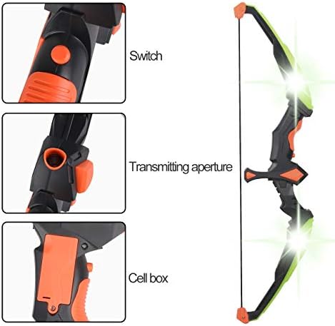 LONGER ARROWS MORE ARROWS VALUE PACK: Our children’s archery set includes 1 bow (length 24.in) and more arrows (9 arrows) to shoot farther arrows (length 19in) and larger target (10in width) and 1 quiver.Our archery bow comes with 3 modes of flashing lights. When shooting the target, the LED flashing lights in the toy bow will glow to easily track the arrow position at night. Need 2 AAA batteries;