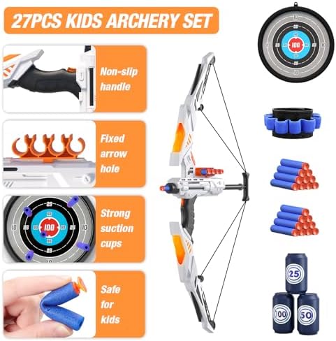 [Safe Material for Kids] -HYES kids archery set is made of high quality material, durable and not easy to break. It has passed ASTM and CPC certifications, suitable for little one to use. The bow is designed with a non-slip grip and no sharp edges, friendly for kids. The arrows are made of vacuum soft rubber suction cups with strong adsorption.