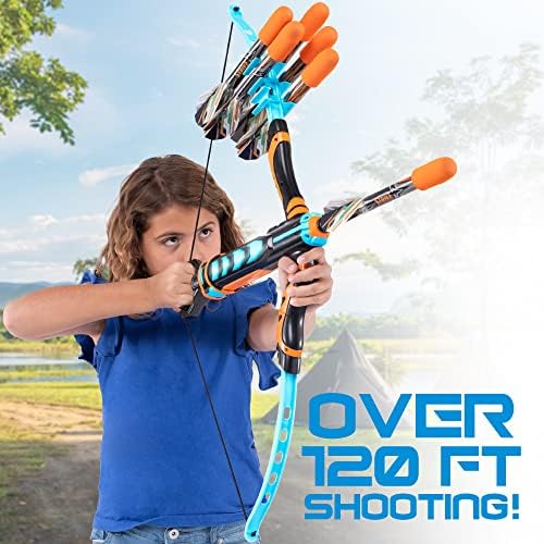 NOWHERE TO HIDE. Shooting Range of Over 120 FT. Run around as fast as you can but there is surely nowhere to hide from this Bow and Arrow for boys. This toy is surely Durable, lightweight, impact foam tip arrows provide safety, power and fun