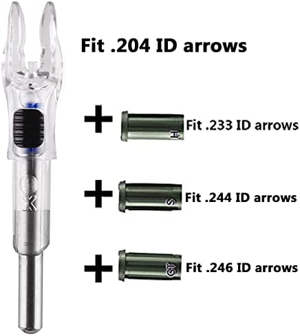 KEAUP 6PCS X Lighted Nocks for Arrows with .204 .233 .244 .246 Inside Diameter with H, S, GT Bushings High-Visibility LED Arrow Nocks, ON/Off Switch Included