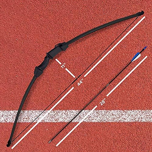 INCLUDED: 1 Riser, 2 limbs, bowstring, 5 arrows, finger protector, arm guard, eyesight, quiver and 2 target sheets. Overall length – 44”, with 22” – 24” draw length and 16-20 lb draw weight.