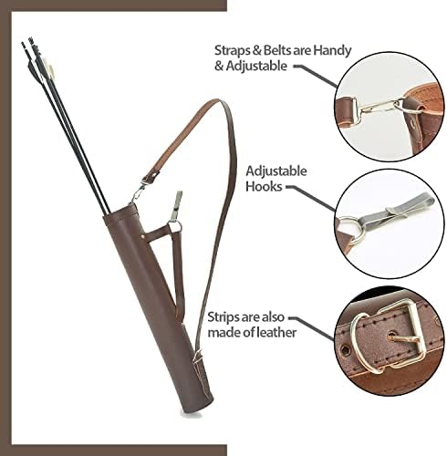 LC's Archery Back Arrow Quiver -Genuine Leather Arrow Quiver-Traditional Handmade Quiver for Arrows for Hunting & Target Practicing-Adjustable Lightweight & Comfortable