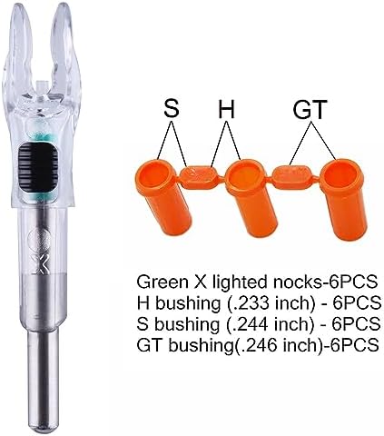 LEANPRO 6 PCS X Lighted Nocks for Arrows .204/.233/.244/.246 LED Nock Universal Fit for 5.2mm Arrows Archery Hunting (Green)