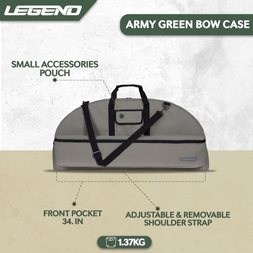 ✅STYLISH & FUNCTIONAL – LEGEND Essential Bow Case merges functionality with style. The user-friendly features include easy-to-use sturdy zippers, ensuring optimal protection for your bow. Beyond mere protection, its sleek design in bold Army Green with 36-inch interior makes it a fashion statement for contemporary archers. Choose the perfect fit for your equipment while prioritizing safety and style.