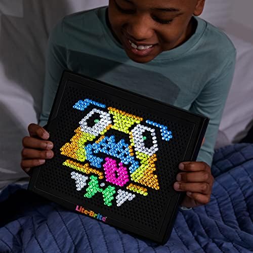 Fill your world with LIGHT like never before with the all-new Lite-Brite Super Bright HD – the BRIGHTEST Lite-Brite yet! With a stunning high-definition display and the latest LED technology, the Lite-Brite Super Bright HD brings your designs to life like never before. The colors are brighter, the images are clearer, and the fun is endless. Assemble your art using the provided design templates, or create vibrant new art using your own imagination! And with a simple touch of a button, you can switch between different light modes for a dazzling display of your masterpiece. Recommended for kids who love to craft and create, ages 6 and up! THE BRIGHTEST LITE-BRITE YET You asked, we delivered. Now with DOUBLE the LEDs, your light art will shine brighter than ever before! 650 MINI-PEGS This set comes with 650 colorful mini-pegs in multiple colors for endless artistic possibilities! 12 HD DESIGNS Create beautiful, HD art using the 12 easy-to-follow art templates or get creative and design your own! SNAP-ON GRID The Lite-Brite Super Bright HD was designed with a new SNAP-ON grid that lets you place the templates underneath, allowing your art to really shine! 4 LED LIGHT MODES There are 4 different light modes that you can switch between for a fun and brilliant display of your art.