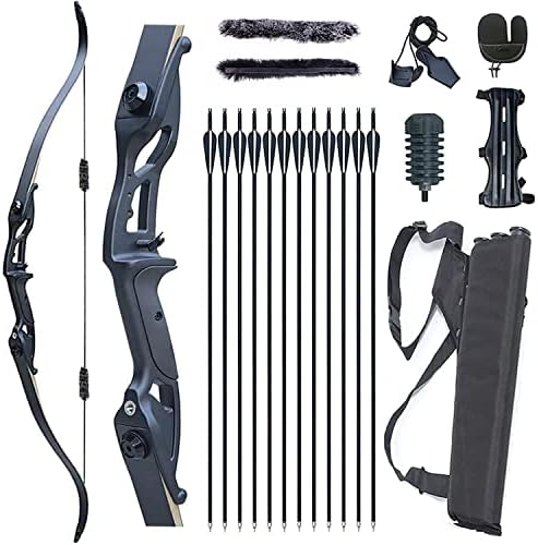 Package Contents: 1 x takedown recurve bow, 1 x arm guard, 1 x finger guard, 1 x bow stringer tool, 1 x bow stabilizer, 2 x string silencer, 1 x 3 tube arrow quiver, 12 x carbon arrows.