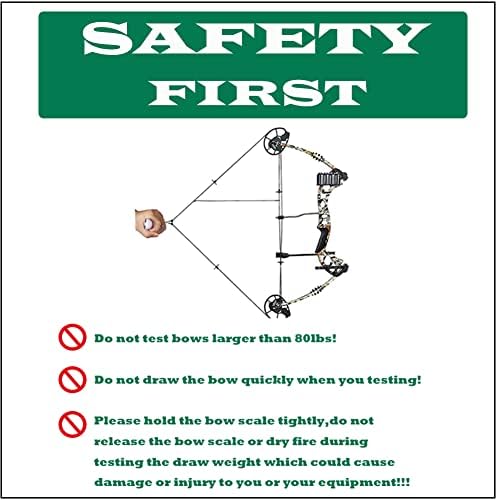 NOTE: Do not test bows larger than 80lbs! do not draw the bow quickly when you testing!!! Please hold the bow scale tightly,do not release the bow scale or dry fire during testing the draw weight which could cause damage or injury to you or your equipment!!!