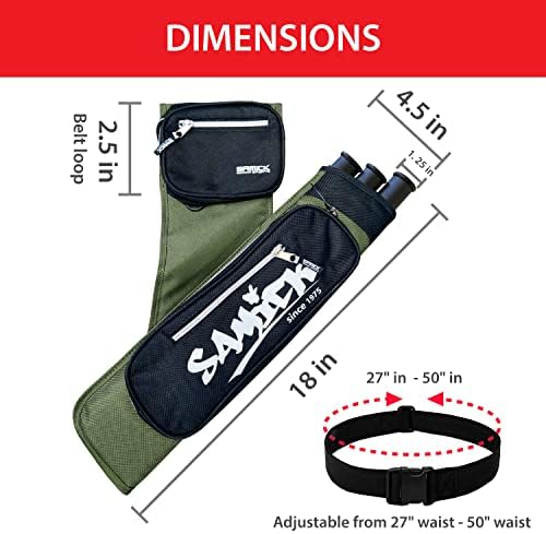 ADJUSTABLE – Samick Sport’s hip quiver attaches to the adjustable belt and can be comfortably positioned on the waist to suit your individual preference. It can fit up to a 42” waist. Our easy plastic buckle makes it easy to put on and take off.