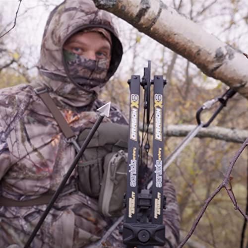 Specifications: Axle-to-Axle 30″, Brace Height 6.6″, Draw Weight 0 to 70 LBS, Draw Length 18″ to 31″,(Each 0.5″ adjustment), IBO Speed 310FPS, Net Weight 3.8 LBS, String Length 58.13″ , Cable Length 32.23″. For the extra replacement string and cables, B091291VDQ is for the Dragon X8 compound bow.