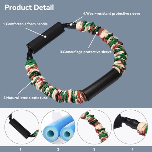 【Anti-Break Latex Resistance Band】- The stretch band is made of 100% eco-friendly natural latex, free of noise and any unpleasant odours. Outer part wrapped with camouflage nylon fabric for added durability, strong, elastic, and extensible.
