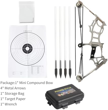 🎉【Complete Package】 The package includes 1* bow, 4* arrows, 1* target paper, 1* storage box, 1* wrench. Perfect for indoor target shooting game entertainment. Suitable for ages 15 and up.