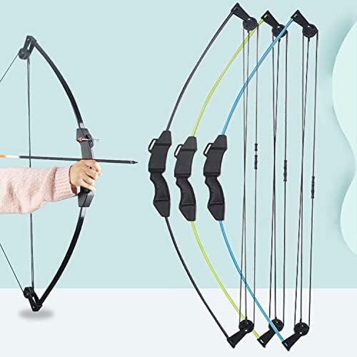 👍Strong And Sturdy Material With Perfect Design: This compound bow riser was made of high quality composite material, and the bow string was made of durable nylon material, Fiberglass arrow gives durability. Ambidextrous reinforced handle for both right and left handed boy and girl, soft-touch grip for excellent handling.