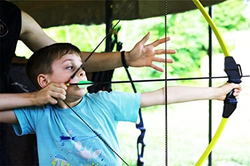 🎯Archery Bow: 15-18 lb draw weight and 20 inches draw length. This compound bow is equipped with a labor-saving eccentric wheel, with a labor saving ratio of 50%, which allows children to easily control the bow,Recommended user’s age: 8 years old or More than 8 years old.