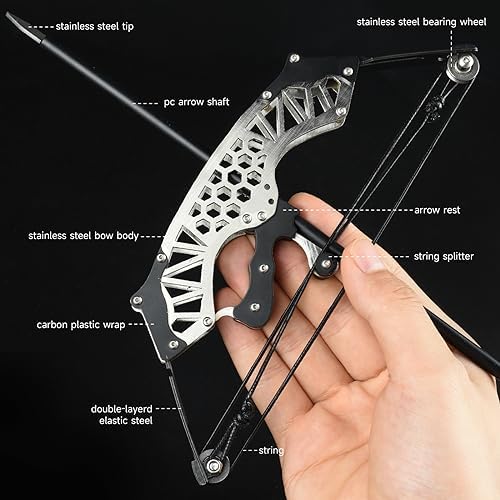 Our mini composite bow, which is of all metal design, is sturdy and durable. It can not only be used for archery and target shooting, but also can be used as an ornament or a small gift for friends. But when using our composite bow, do not aim at people, animals and all important objects. Please use it under the supervision of adults!