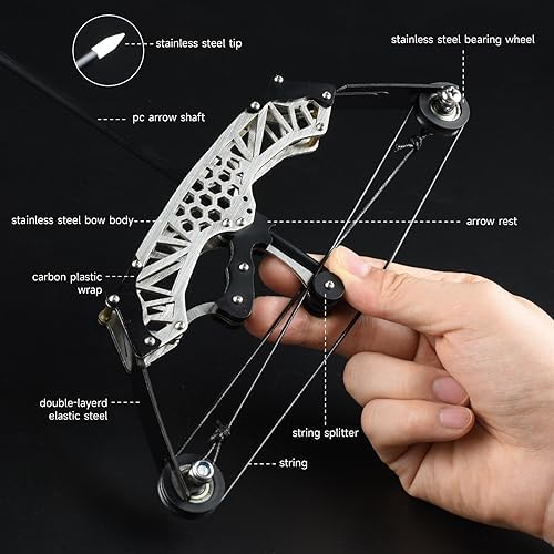 SQLWYLAT Mini Bow and Arrows Set Compound Bow Stainless Steel Material Catapult Bow Archery Gift for Target Shooting Outdoor Games