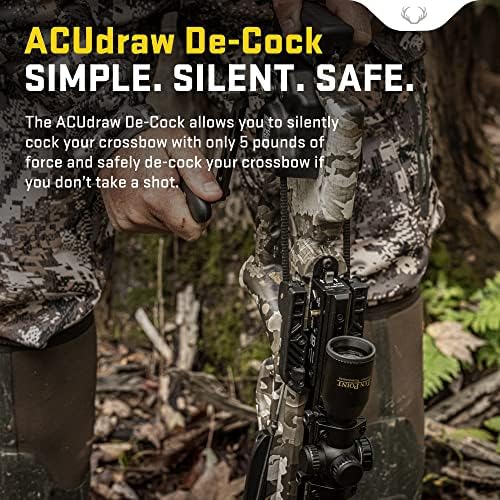SAFE CROSSBOW DE-COCKING – Forget shooting your arrow into the ground or target if you don’t take a shot. Safely de-cock the crossbow with the ACUdraw De-Cock. You can remove your hand from the handle at any point and it will stop in its place.