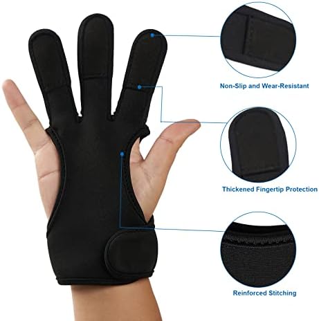 Color: BlackMaterial: Diving clothFeatures: Three finger protector, breathable, lightweight, non-slipCategories: Archery protectionApplication scenario: Protect fingers in archery.