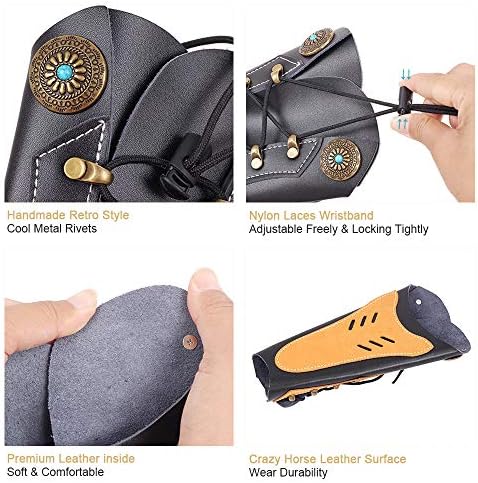 ADJUSTABLE STRING-Lacing system is really ideal for your hands to work, hold the arm guard in place, adjust the strap that fit your hand/wrist size perfectly, especially for women, beginner. Lightweight and good scratch resistant ,easy in and off with one hand