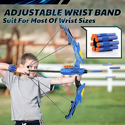 💡Easy to Use and Aim: The kid-sized toy bows for boys are easy for little hands to handle, providing a comfortable and enjoyable shooting experience. The foam darts are designed for accuracy and stability, helping young archers hit the target every time. Foam darts can be easily stored in the two bracelets provided for easy access and quicker shots.