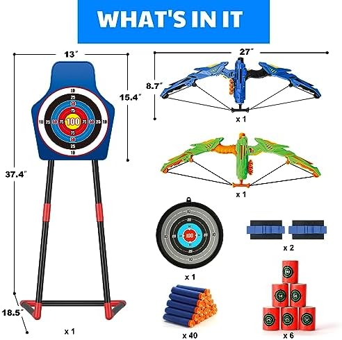 Kids Bow and Foam Dart Dual Target Game for Boys Girls 4 6 8 12 – Unleash Their Inner Archers! Bring the excitement of archery right into your home with our Archery Darts Target Game for Kids 6-8. This This outdoor games for kids 8-12 allows your little ones to embark on epic adventures as they aim, shoot, and hit the target with foam darts, all in a safe and fun-filled environment.