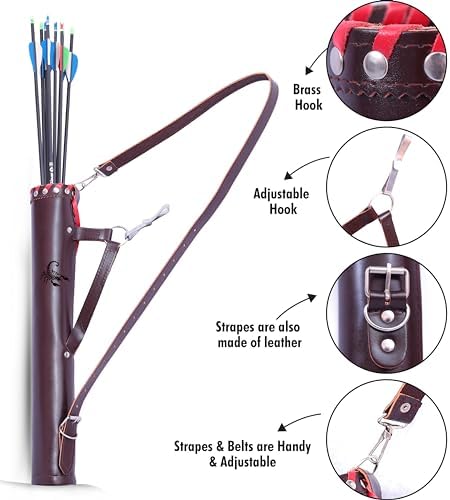 ✅ DETACHABLE STRAP: This quiver for arrows also features a detachable strap that offers comfort ability. The quiver is made easy to draw and place arrows quickly. It is handmade to make sure the perfect stitching experience.
