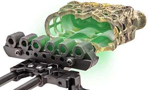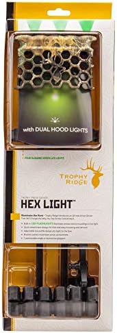 Illuminate the hunt with the all-new Hex Light arrow quiver. The all-new Hex Light Arrow Quiver features four glowing green LED lights – three on top of the hood and one inside. The Hex Light quiver holds five arrows using adjustable single or dual arrow grippers, while the precision-designed soft-touch hood of the quiver can accommodate fixed or mechanical broadheads without risk of deploying. Shine brighter with the Trophy Ridge Hex Light Quiver.