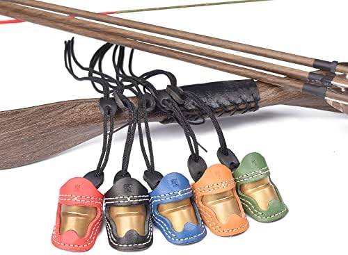 Size: 21-24 mm (the best size is 22-23, the two sides of the finger can be pressed to the inside to adapt to 21 mm, and the outward expansion can be adapted to 24 mm)Black,Green,Red,Blue,Yellow For choiceMaterial: Soft Leather & BrassQuantity:1 PiecesSuitable for new archers, adjustable size,no pain, no unbearable pressures, clean release,no deformation whatsoever to the thumb, as if wearing leather and steel armor on the thumb