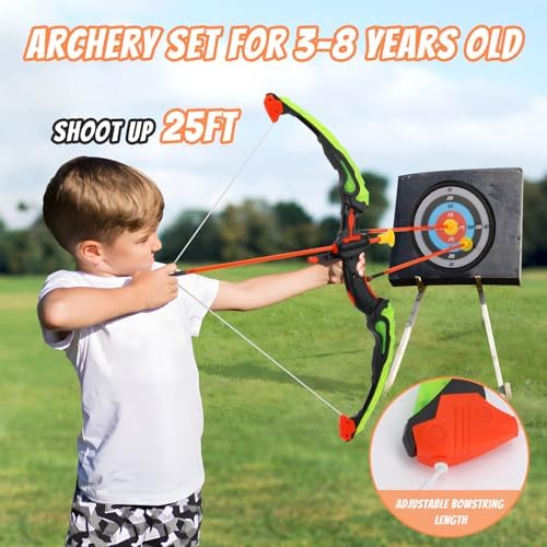 【Perfect Toys Gifts for Boys Girls 3 4 5 6 7 8 9 10 11 12 Year Old】A great gift for outdoor games, pretend play, birthday parties, class parties, Halloween and Christmas gifts and is also the 4 5 6 7 8 9 10 year old girl birthday gift ideas. This toy bow and arrow is a wonderful gift for your little archer. Bow and arrow for kids 4-6, 6-8, 8-12