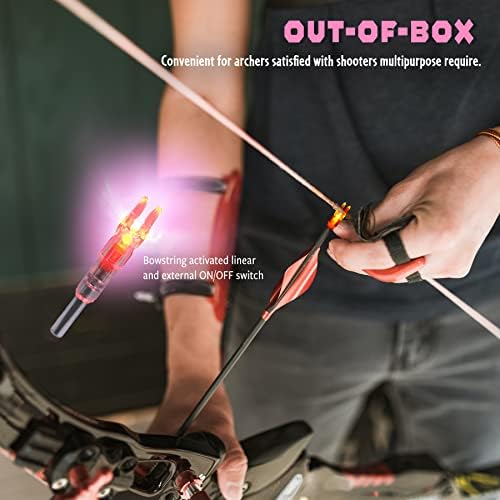 No Tools Required: LED lighted nocks are a unique design, lighted nocks for arrows to switch, turn on automatically when shoot, combines high visibility light that activates upon release and deactivates by hand pressing. Perfect for outdoor hunting targeting, easily find your arrow and prey during the day and night.