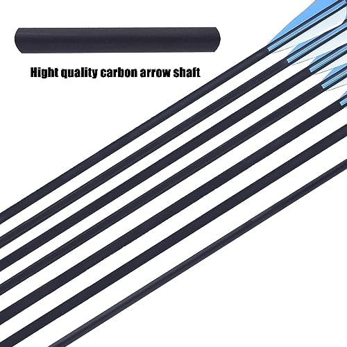 [Material] – Arrow body made of High quality Pure Carbon,+/-0.003; arrow tips made of stainless steel; 4″ Real Feathers, perfect for targeting practice and hunting High quality material contributes to exterior durability and long-lasting target practice.