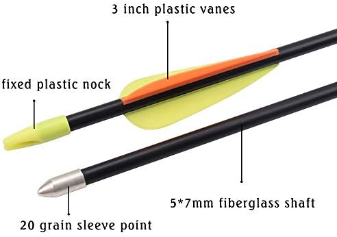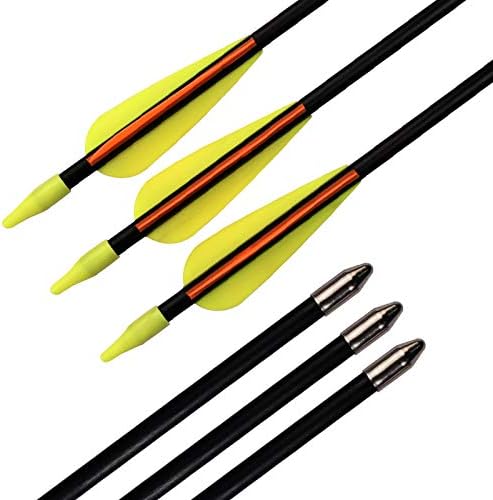Arrow shaft length: 26 28 30 inch for your choice Arrow shaft material: Fiberglass GPI: 14.66 grain/inch Vane: 3 inch TPU Streamline Vanes (1 Orange and 2 Yellow)