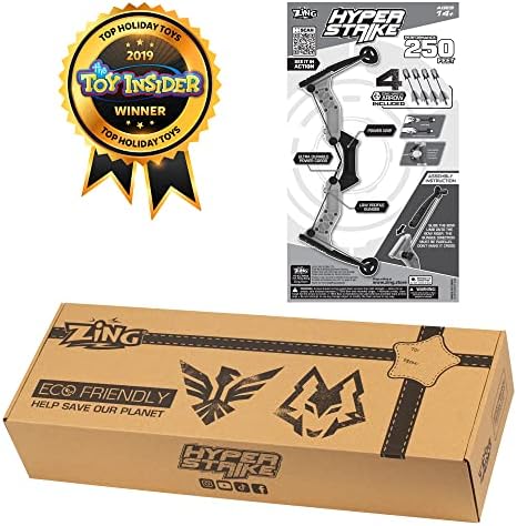 Zing HyperStrike Bow Archer Pack – 1 Bow and 4 Zonic Whistle Arrows, Launches Arrows Up to 250 Feet, for Ages 14 and Up (Carbon Fiber)