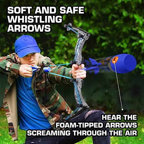 PLAY SAFE: Foam-tipped arrows ensure that safety isn’t sacrificed in the pursuit of fun, whether playing alone or with an archery target! The embedded whistle allows you to hear the arrows screaming through the air as they zoom towards your target